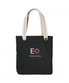 The Allie Tote is perfect for shopping, commuting or sightseeing. Contrast lining, striped handles and large metal grommets add a touch of whimsy to this casual tote. 11 Oz., cotton canvas. Interior zippered pocket. 13.25" W x 15.75" H x 3.5" D.